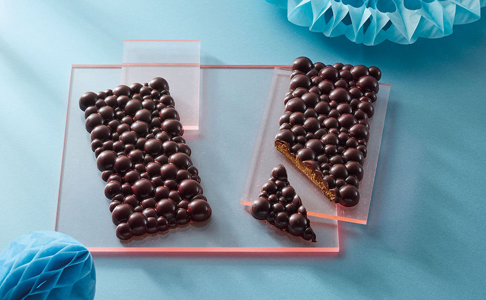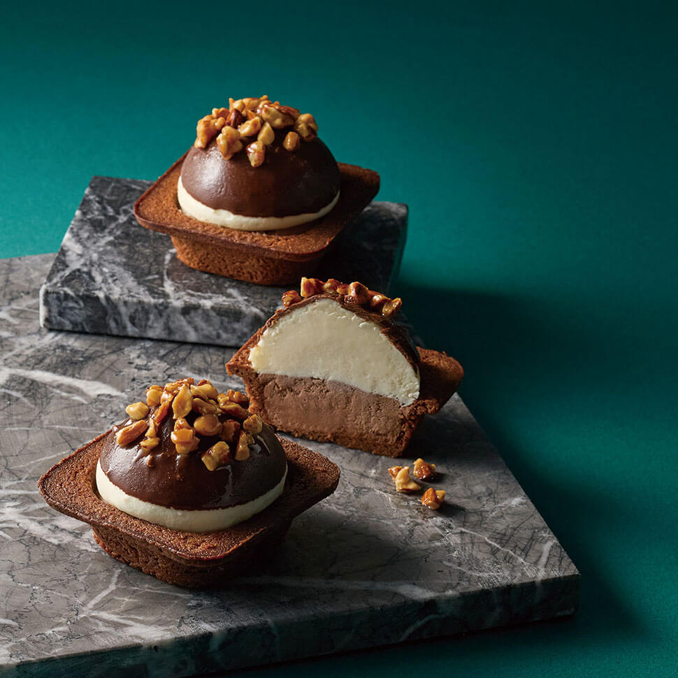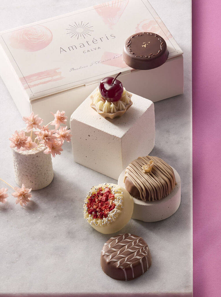〈カルヴァ〉発の新ブランド。2024年ショコラの世界大会の国内予選で賞を獲得したチェリータルトを表したボンボンや、まるでケーキのような新作ショコラのアソートが登場します。