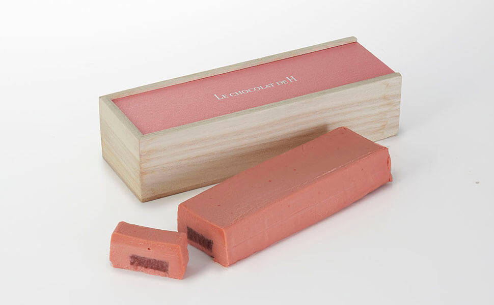 店舗を持たず催事でしか出会えない“幻”のショコラトリー。糖度が極めて高い埼玉県産ブランドいちご“あまりん”とホワイトチョコレートを合わせた新作を、今回のアムールのために開発されました。