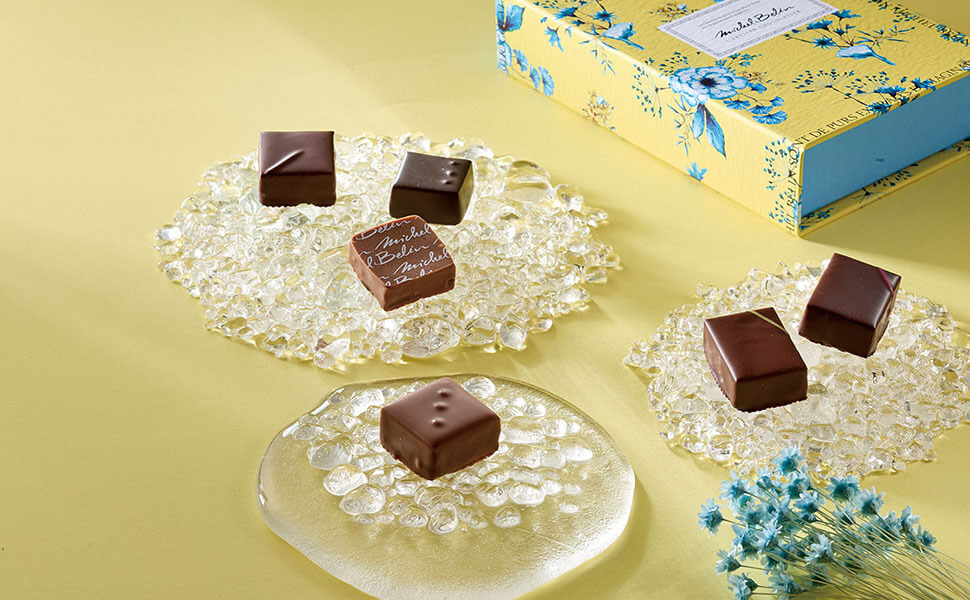 “フランス菓子の至宝”と称えられるショコラティエ ミッシェル・ブラン氏。プルゴーニュ地方のぶどう、南フランスのすみれ、東部ロレーヌ地方のすももなど、ブラン氏が旅したフランス各地の風土を表現したショコラに注目です。