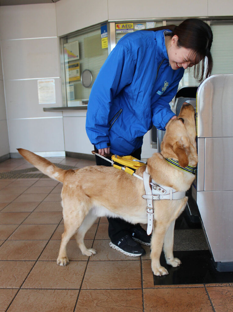 自動改札機への誘導。(画像提供:社会福祉法人 中部盲導犬協会)