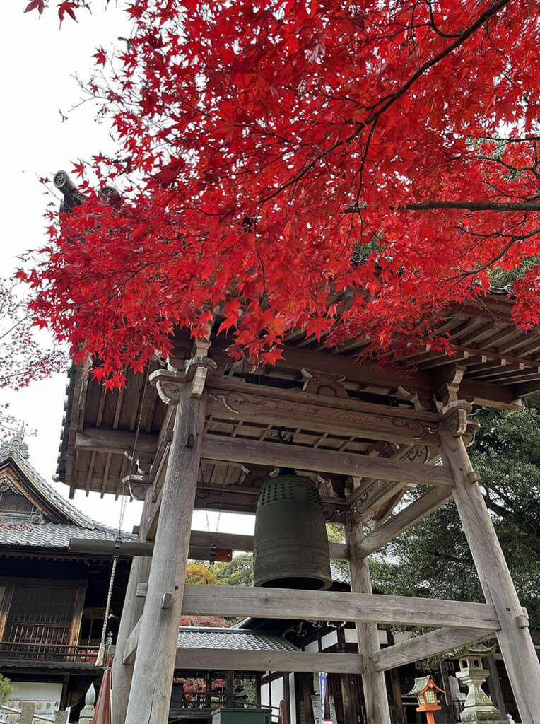 山寺の静寂、本堂に至る参道脇の風情、本堂脇展望台から望む犬山城、小牧城、名古屋の高層ビル群などの絶景とともに、紅葉を観賞できます。2025年も見頃に合わせて「もみじまつり」が開催されます。