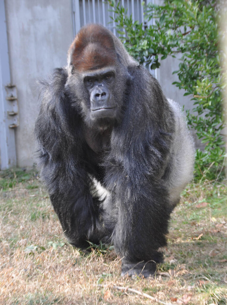 推しポイントや特徴など/国内の動物園で飼育しているオスゴリラの中で最高齢です。人に興味があり、じっと見ていると、よってきて、目を覗き込んでくれたりします。高齢のため、最近は寝転がってゴロゴロしている時間が多いです。
