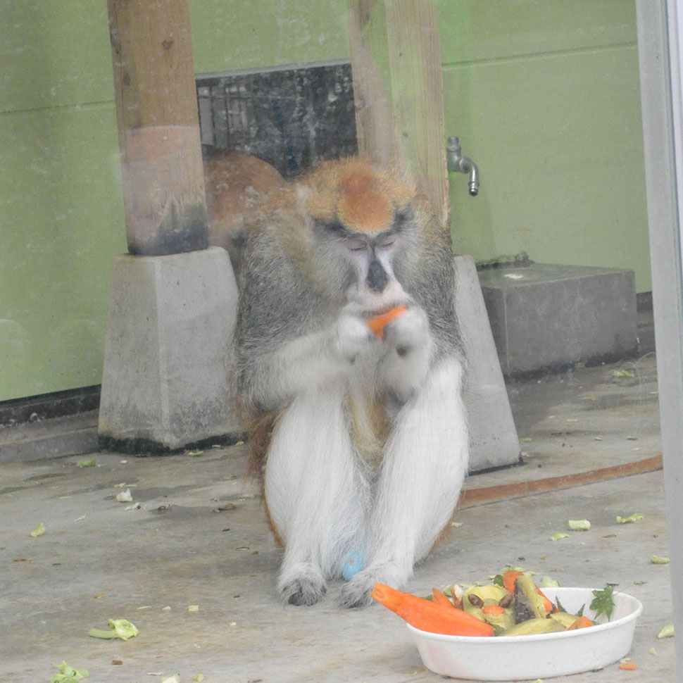 動物たちのおやつを飼育員と一緒につくるイベントです。つくったおやつを食べている所も観察できます。