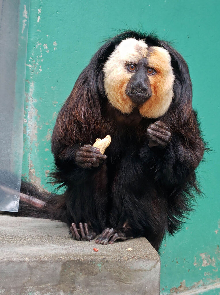 推しポイントや特徴など/インパクトのある白い顔と黒い身体が特徴のサルです。飼育員のブログやSNSで紹介して人気になりました。エサの様子などSNSで紹介しているので、ぜひ見てみてください。