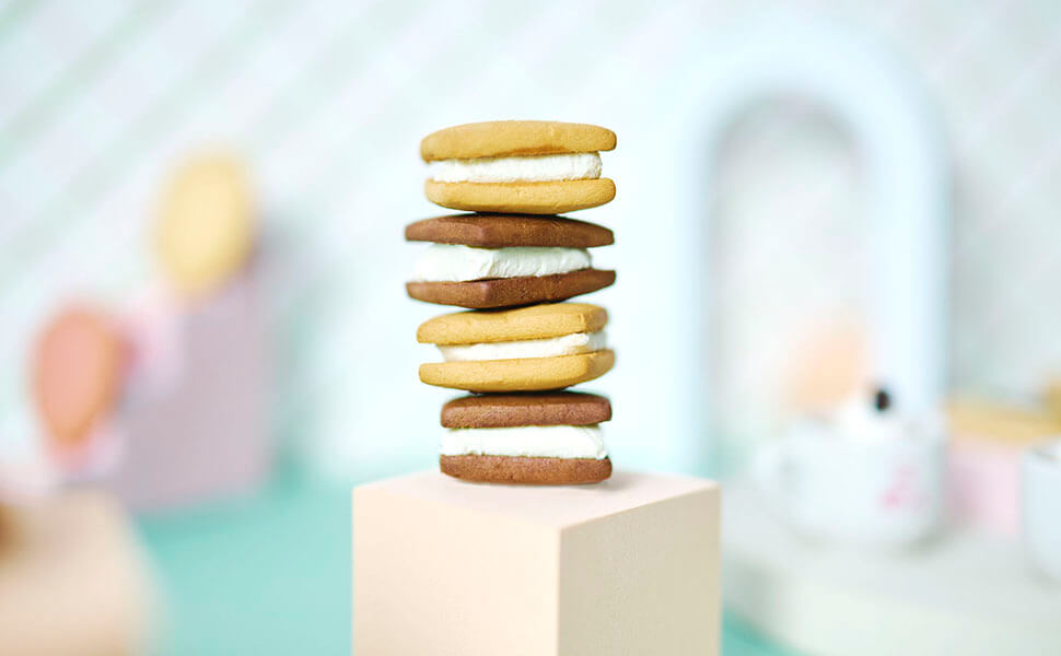 四角い幸せのクリームサンドビスケット「RURUUTU」は、プレーンとティラミスの2フレーバー入り。プレーンは、厳選した小麦とはちみつを使用したさくほろビスケットに、ミルキークリームをたっぷりとサンド。ティラミスは、濃厚ココアビスケットにマスカルポーネクリームをたっぷりとサンド。