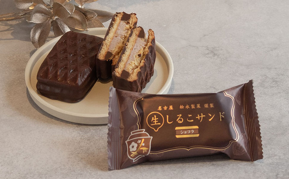 1938年に名古屋市西区に創業。キャラメルの製造から始まった松永製菓がビスケット製造にも着手し1966年にしるこサンドを発売。発売当初から爆発的な人気を博し、2015年にはプレミアムライン「生しるこサンド」を発売。2024年にはプレミアムライン専用の「SHIRUKOTTE」という工場併設型店舗をオープンし、普段のオヤツにしるこサンド、お手土産には生しるこサンド、お出かけにはSHIRUKOTTEという事業を展開中。また直営店「パインツリーファクトリー」では各種しるこサンドのほか、割れビスなども販売しています。